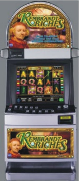 IGT Rembrant Riches has a LCD touchscreen monitor, ticket printer, Bill acceptor and a Ticket-in - Ticket-out system. It comes with a casino cabinet.