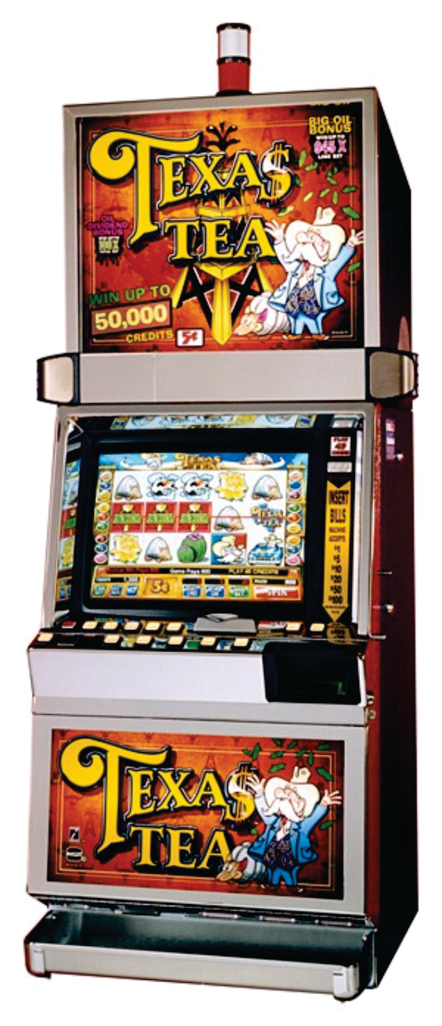 IGT capitalized upon the popular notion that ‘everything is big in Texas’ with a fun I-Plus video slot with the new 039 enhanced deluxe memory computer board called Texas Tea, and this game has all the sights and sounds that can be found in the Lone Star State. The slot player has plenty of symbols to win on and all line wins are multiplied by the total number of credits wagered on any winning line; the greatest line win occurs when five Texas Tea symbols appear on the pay line, namely, 10,000 credits; five Armadillo symbols yield 500 credits, followed by the Texas Tea Air Express, Rich Texas Ted, and Texas Steer symbols which yield 250 credits. The Yellow Rose of Texas symbol, and other vegetation symbols native to Texas are also featured in this game. Texas Ted is the rich oil multimillionaire and he is featured in both bonus games. The first bonus game is the Dividend Bonus when you, the player, get the appropriate Texas Ted symbols on the screen as scatter pays and you are invited to his private plush oil corporate office and that is when he congratulates you as an oil investor and he writes you out a dividend check in credits as your bonus. In effect, this bonus round is initiated when at least three Texas Ted symbols are displayed on the screen so that the scatter wins are multiplied by the total number of credits played, thereby, resulting in the values displayed on the dividend check; the more Texas Ted symbols displayed, the greater the multiplier so that more credits can be won on your oil dividend bonus check.