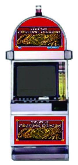 IGT Triple Fortune Dragon has a LCD touchscreen monitor, ticket printer, Bill acceptor and a Ticket-in - Ticket-out system. It comes with a casino cabinet.
